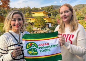 Look for the green and white Japan Panoramic Tours flag. The tour departs at 8:00 AM sharp. No-shows or late arrivals cannot be refunded or accommodated.